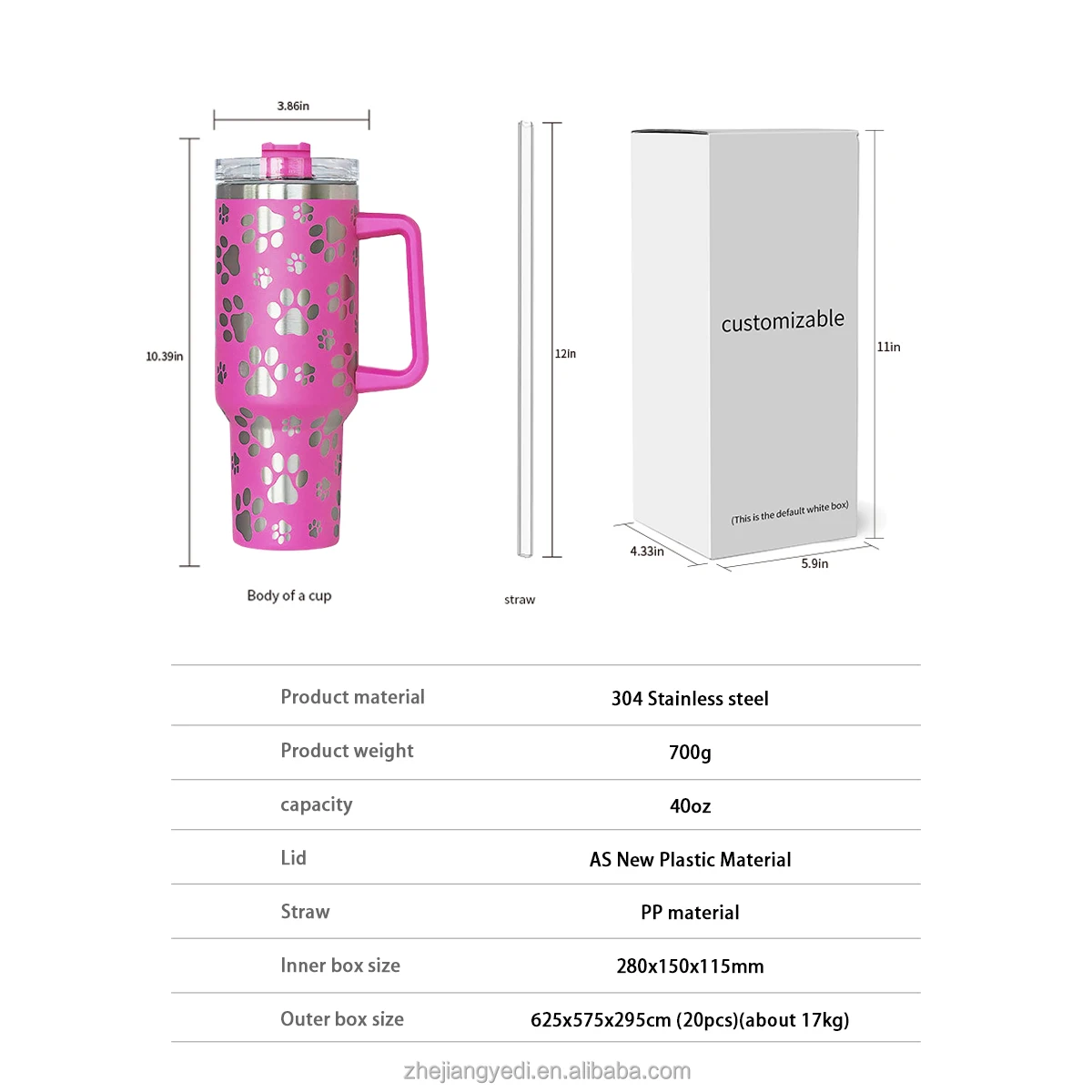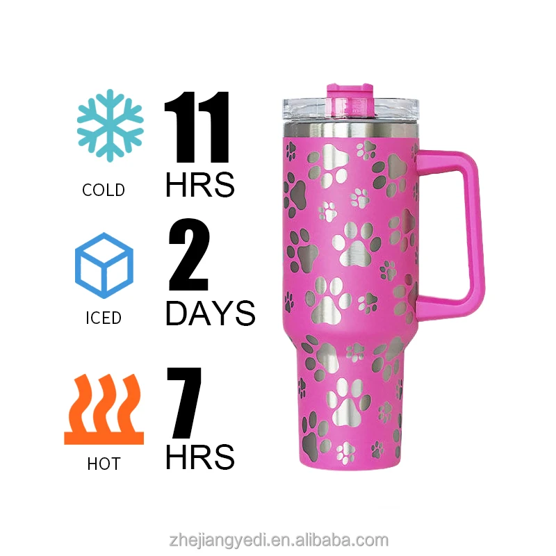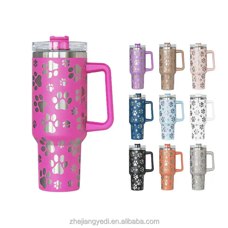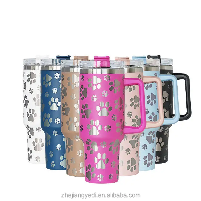 Individueller 40oz 40 oz Lasergravur Katzenkralle Doppelwandiger isolierter Edelstahlbecher mit Henkel und Strohhalm Großhandelsmasse